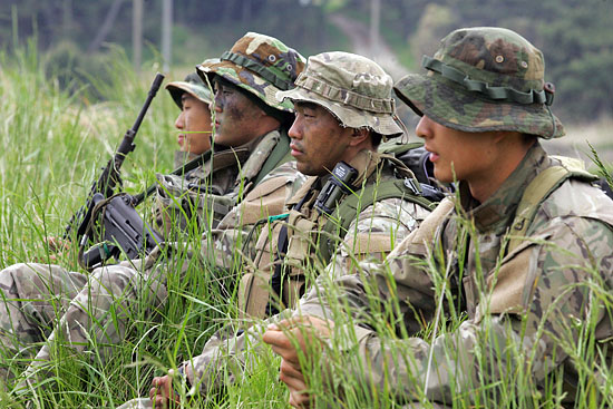 ▲잠시 휴식을 취하고 있는 UDT대원들. [사진-통일뉴스 조성봉 기자]