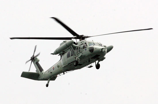▲이날 훈련에는 해군 함정 외에도 상륙군의 엄호를 위해 해상초계기 P-3c와 링스헬기, 코브라 공격헬기와 KF-16 등 육해공 항공전력도 동원됐다. [사진-통일뉴스 조성봉 기자]