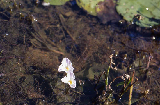 물질경이는 논이나 연못 가장자리에서 자라는 한두해살이풀인데, 물속에 잠긴 그 이파리가 질경이 잎을 닮았대서 이런 이름을 가졌다. 모진 더위가 고개를 숙일 무렵인 8~9월에 뿌리에서 솟은 꽃줄기(花梗) 끝에 연분홍색 꽃이 한 송이 달린다. 꽃이파리는 수초 무리에 공통되듯 세 낱이다.