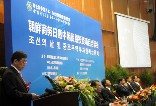 북한 무역성과 중국 상무부, 길림성 인민정부가 7일 오전 9시부터 중국 창춘(長春) 컨벤션센터 국제회의장에서 공동 주최한 ‘조선의 날 및 중조무역 투자항목 상담회’에서 황철남 라선시인민위원회 부위원장은 라선지대의 장점과 특혜, 현황 등에 대해 브리핑했다.