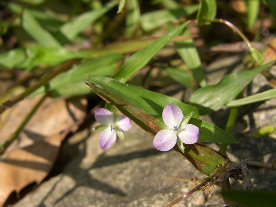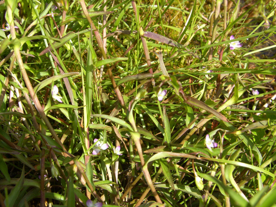 사마귀풀은 논이나 습한 도랑 같은데서 자라는 한해살이풀인데, 이 풀을 찧어서 사마귀에 붙이면 사마귀가 깜쪽같이 떨어진대서 이런 이름을 가졌다. 줄기는 옆으로 뻗는데 마디마다 뿌리를 내리면서 퍼져나간다. 늦여름 잎겨드랑이에 연분홍 꽃이 달린다. 추진 데서 살지만 앙증맞은 꽃은 시선을 끌기에 족하다.