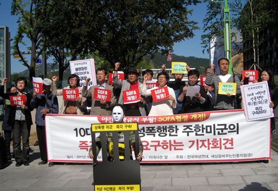 이강실 상임대표는 “죄질이 나쁜 범죄임에도 불구하고 우리가 제대로 수사도 하지 못하고 처벌도 하지 못하기 때문에 이런 사건들이 계속 발생하고 있다”며 “무엇보다도 SOFA가 개정돼 이들이 처벌받아야만 성폭행을 줄일 수 있다고 생각한다”고 말했다.