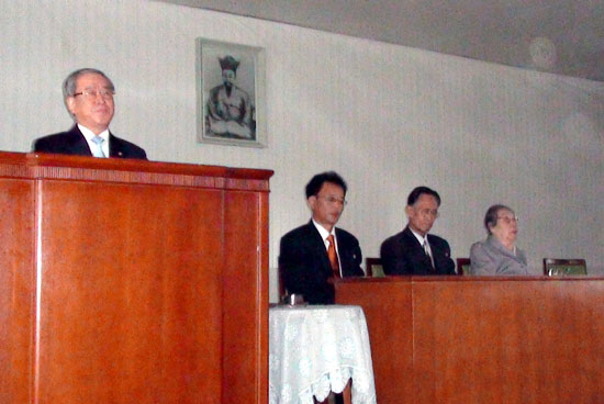 ■ 이범창 종무원장 : 8년 전, 2003년에 북쪽에서 여섯 분이 오셔서 합동시일식을 한 적이 있었다. [관련기사 보기]
