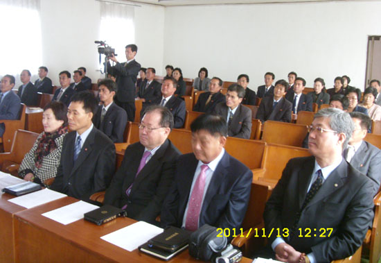 일요일인 13일 11시에 합동시일식을 봉행했다. 우리 올라간 인원 10명이 앞줄에 앉고, 그쪽 지도위원회 인원들과 평양시민들은 우리 뒤쪽에 앉았다.
