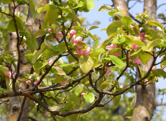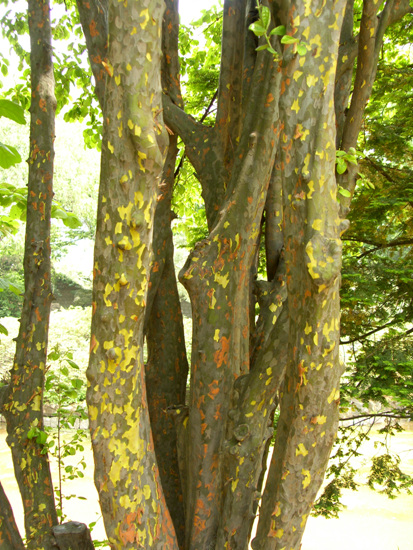 더 눈여겨 볼 것은 배꽃을 닮은 연분홍 꽃잎 껍질이 벗겨지면서 드러나는 연두색의 매끈한 수피(樹皮)