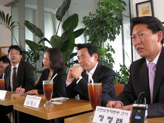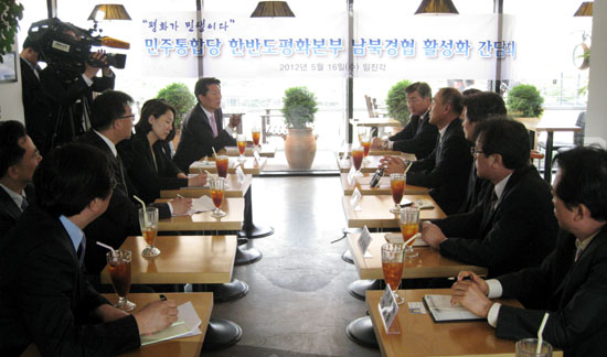 김종수 민주통합당 통일전문위원의 사회로 진행된 이날 간담회에는 통일부 이창렬 기획재정담당관 등 통일부 직원들이 배석했다.