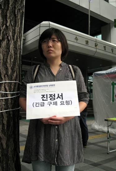 갑상선 암 의심상태에서 구속된 원진욱 범민련 남측본부 사무처장의 구속적부심을 하루 앞둔 12일, 황수영 민주노총 통일위원장은 “구속적부심 신청할 때 병원에 가서 정확하게 진단받고, 암이 판명된다면 치료를 받을 수 있도록 대한민국 국가인권위가 그 역할을 해달라고 당부하기 위해 이 자리에 왔다”며 이같이 말했다.