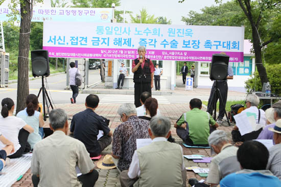 김을수 범민련 남측본부 의장대행은 “저는 67년 감옥에서 위궤양을 앓고 있었느데 교도소에서 치료할 수 없으니까 형집행정지로 집에 가서 치료하라고 석방시켰다”며 “박정희 정권도 아픈 사람 치료를 위해서 행집행정지로 내보내서 치료하게 했는데 현재 검찰이 아픈 사람, 그것도 암이라는 조급한 진단과 조치가 필요한 일인데 그것을 막고 있다”고 지적했다.