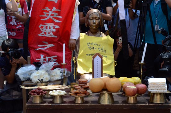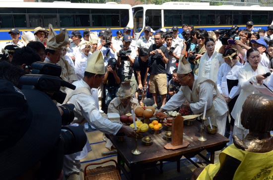 그러나 경찰은 외교문제 등을 이유로 행렬을 가로막아 소녀상 앞 진혼제는 행사 관계자 30여명만 참석한 가운데 치러졌다.