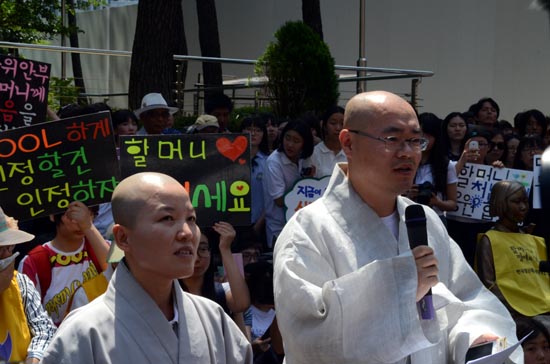 진혼제 직후 일본대사관 앞에서 열린 제 1035차 일본군'위안부' 문제 해결을 위한 수요집회는 대한불교조계종 등에서 주최했으며, 참가자들은 “일본 정부는 진정한 한일관계의 발전을 위해, 전쟁 범죄인 일본군‘위안부’피해자 문제를 인정하고 공식사죄와 법적 배상하라”, “한국정부는 일본군 ‘위안부’문제 해결에 적극 앞장서라”고 촉구했다.