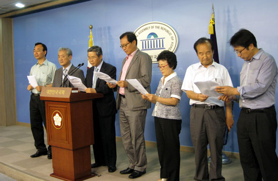 이들은 기자회견에 앞서 이날 오전 10시부터 국회도서관에서 이종걸 의원실 주최로 ‘남북경협긴급정책포럼’을 가졌으며, 이날 기자회견문에는 민주통합당 강창일, 김춘진, 문병호 의원이 이름을 올렸다.