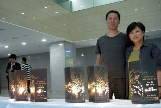 이번 전시회에는 이철수 화백의 판화 10점과 김서경.김운성 부부작가의 ‘소녀의 꿈’을 축소한 추모등 60점이 전시, 판매된다.