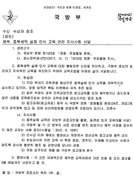이를 토대로, 육군본부는 '종북세력 실체인식 교육자료 관련 추가지침 하달'을 통해, "3군사를 포함, 제대별로 작성하여 활용중인 평가문제와 육군교육사 제작 참고교재 등 각종 교육자료는 '12. 9. 21부로 폐기"하라고 지시했다.