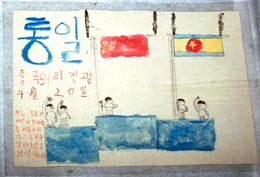 | 조선족 어린이가 북한 어린이에게 통일의 염원을 담은 그림엽서를 그렸다. |