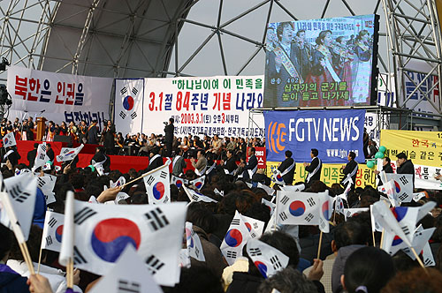 `3.1절 84주년 기념 나라와 민족을 위한 구국금식 기도회`가 한국기독교총연합회(한기총), 한국기독교지도자협의회(기지협) 주최로 1일 오후 3시 약 7만여명(경찰 추산)의 교회 신도들이 모인 가운데 여의도 야외음악당에서 열렸다.