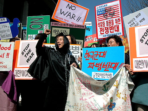 한국여성단체연합(여연), 대한 YWCA연합회, 한국여성민우회, 평화를 만드는 여성회 등 37개의 여성단체들로 구성된 반전평화여성행동은 미국의 이라크 전쟁을 반대하며 성명서를 발표하고 퍼포먼스를 진행했다.