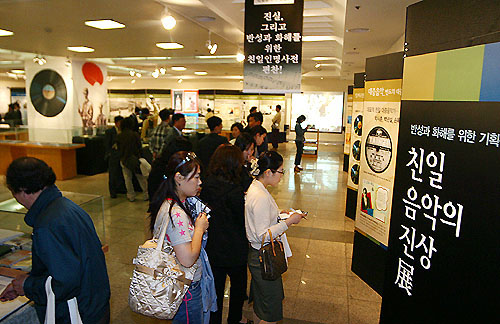 ■ 판넬전시, 원사료 전시, 또 약 50여곡의 친일가요, 시국가요의 악보와 그 당시 부르던 그대로의 음원을 터치 스크린으로 재현했다. 또 별도 도록을 간행하고 CD까지 보급해 판매하고 있다.