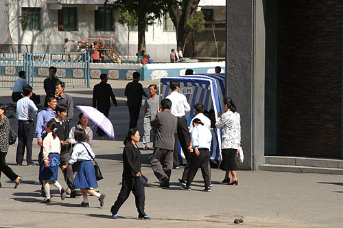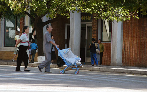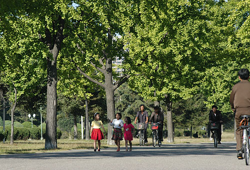 | ▶휴일 낮, 가족단위로 나들이에 나서는 평양 시민들이 눈에 많이 띠었다. [사진 - 통일뉴스 송정미기자] |