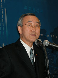 28일 오전 11시 신임 반기문 외교통상부장관은 서울 세종로 외교통상부 청사 2층 기자회견장에서 첫 정례 기자회견을 갖고 "한미일 모두 북한 핵문제 해결하는데 있어서 고농축 우라늄 문제가 동시에 해결돼야 한다는 입장을 취하고 있다"며 이같이 밝혔다.