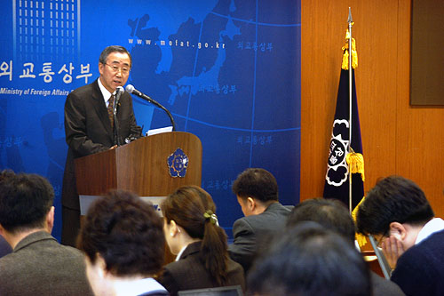 최근 북한이 탄핵정국과 한미연합군사훈련을 이유로 남북경협 관련 실무회담의 개최 장소와 시기를 변경하자고 잇따라 제안하고 나선 데 대해 반기문 외교통상부 장관은 이같이 밝혔다.