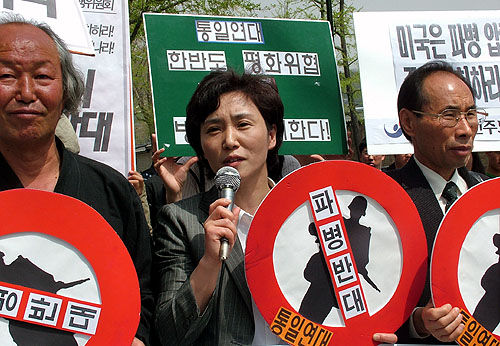민노당 김중기 고문은 기자회견문을 낭독하고 "많은 나라들이 철군을 검토하고 있는 마당에 한국이 전쟁의 당사자인 미국과 영국에 이어 세 번째로 많은 군대를 파병한다면 이라크 저항세력의 집중적인 표적이 될 것이며, 이라크 인들의 원한과 분노의 대상이 될 것이다"고 경고하며 "고건 권한대행은 다시 한 번 자신이 얼마나 중대한 역사의 칼날 위에 서있는지 분명히 깨닫고 역사적 결단을 내릴 것을 강력히 촉구한다"고 밝혔다.