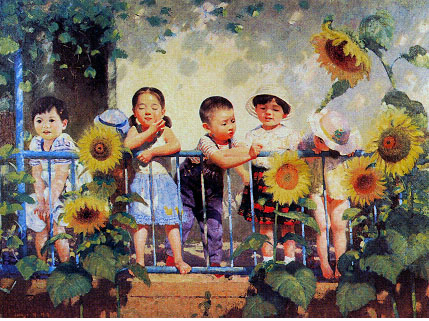 아무튼 이 작품 속에 나오는 어린이는 귀엽고 천진난만한 모습이다. 따가운 햇살에 눈을 감고 있는 여자아이, 해바라기 위에 앉은 잠자리를 잡기 위해 손을 내밀고 있는 남자아이, 그것을 호기심으로 바라보는 아이들...