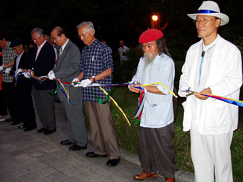 이날 개막행사에 참석한 범국민위원회 이해동, 이이화, 김영훈 상임공동대표와 강화유족회, 고양금정굴유족회를 비롯한 유가족, 성공회대 김성수 총장 등 학계관련인사 30여명은 채의진 선생의 한맺힌 과거를 들으며 침통한 표정으로 아픔을 함께 나누기도 했다.