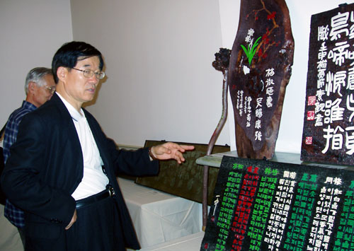 개막행사를 마친 참가자들은 전시된 작품들을 관람하며 긴 세월 동안 오로지 서각에만 몰두한 작가의 노력에 찬사를 보내기도 했다.
