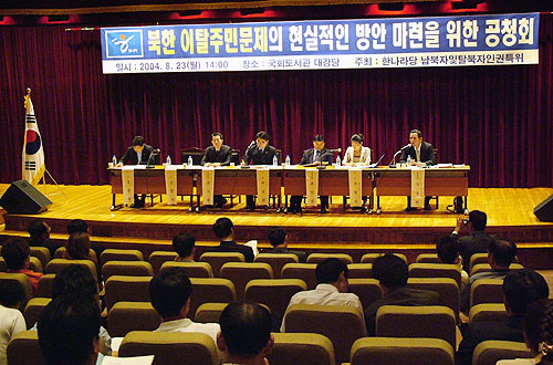 이날 공청회 발제자로 나선 천기원 두리하나 대표는 ‘탈북자 국내송환 대책’을, 윤인진 고려대 교수는 ‘현실적인 탈북자 국내 정착방안’에 대해서 발표했다. 그리고 토론자로는 김문수 의원 외에 한나라당 정문헌 의원과 조명숙 탈북자청소년대안학교 자유터 교장 등이 나왔다.