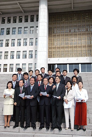 특히 이날 기자회견에는 국가보안법 존치를 당론으로 결정한 한나라당의 배일도 의원도 동참해 눈길을 끌었다.