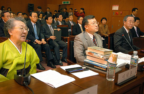 22일 오전 외교통상부 국정감사장에 증인으로 나선 이른바 일본군 '위안부' 출신 길원옥(77) 할머니는 "노인들이 금년에 7명이나 세상을 떴다"며 조속한 문제해결을 촉구했다.