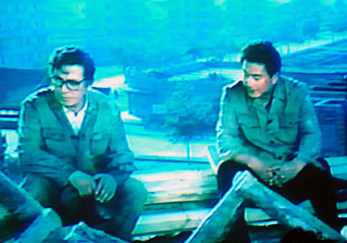 | | ▶'심장에 남는 사람'중 임석준(왼쪽)과 원학범의 담화장면. [사진 - 통일뉴스 이강호기자] | |