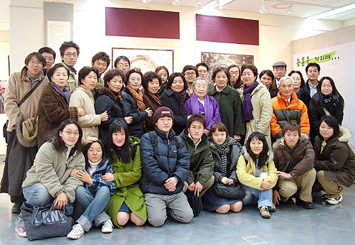 | ▶문익환 목사의 사진전 및 유품 전시장에서 영화 관람객들이 단체로 기념사진을 촬영 했다. [사진 - 통일뉴스 이강호기자] | |