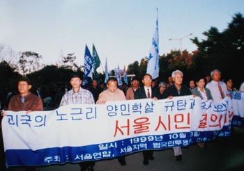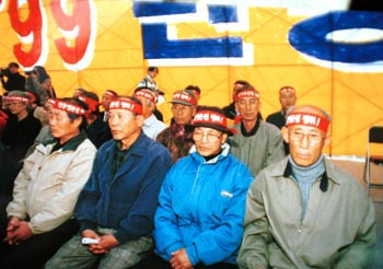 | 1999년 10월 23일 `미국의 노근리 양민학살 규탄과 국가보안법 철폐를 위한 서울시민결의대회`에 참석한 장기수들. |