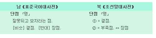 남과 북 ‘단점’의 사전 풀이는 아래와 같다.