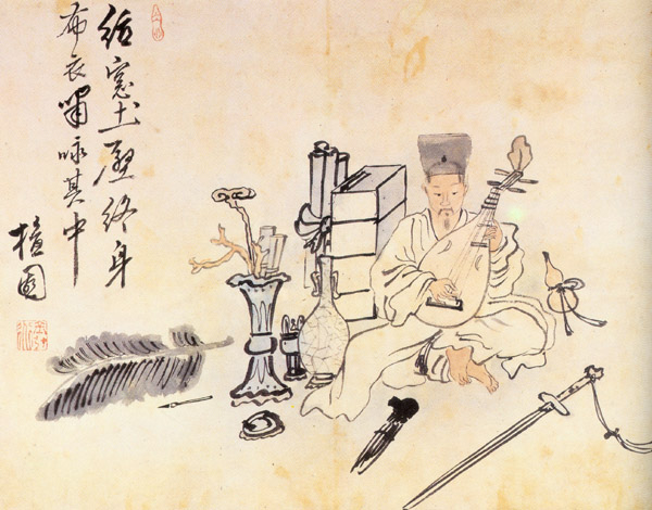 그림에는 선비가 비파를 타고 있는 모습이 담겨있다.