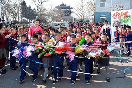 북한 웹 사이트 <조선의오늘>은 3일 입학식 풍경을 사진으로 전했다. 북한은 지난 2012년 9월 최고인민회의 12기 제6차회의에서 전반적 12년데 의무교육 실시법령을 발표했으며, 2014년 시범적용에 이어 올해부터 정식 도입됐다.