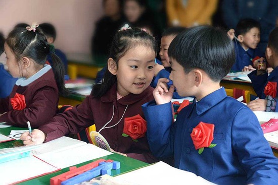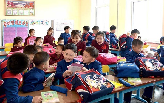 북한 각 학교가 1일 개학했다. 새 교복을 입고 가방을 멘 아이들이 소학교에 입학했다.
