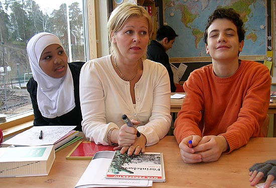 학교 앞 지하철역에서는 아침마다 무료신문(메트로 신문을 만든 나라가 스웨덴이고, 스웨덴 지하철도 한국처럼 온통 무료신문이 널려 있어 지저분하다)을 배포하는데, 누군가 신문을 선생님께 가져다 주면 그것을 가지고 한 시간 삼십 분 가량 토론 수업을 하는 것이다.