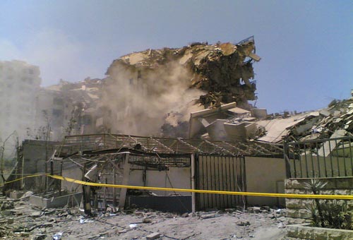 실제로 구글 어스(http://earth.google.com)에서 검색해 보니 여기저기 폭탄 맞은 건물 사진 투성이다.