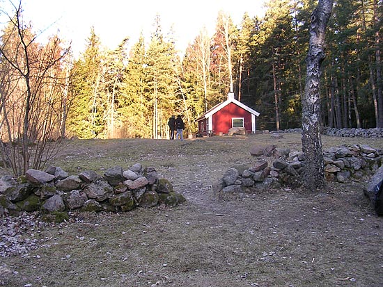 1800년대부터 사람이 살다가 지금은 빈집이라는 붉은색 오두막(스웨덴 전통 집 색깔)이 한쪽 구석에 있어 분위기는 더 신비로웠다.