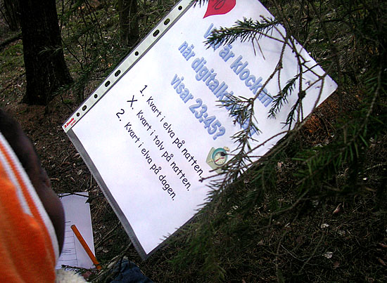 “이 근처에 15개의 퀴즈가 나뭇가지에 걸쳐져 있으니까, 그걸 찾아서 퀴즈의 해답을 표시해 돌아오면 돼요.”