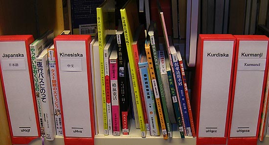 C : 예. 외국어 책장에는 보유하고 있는 서적 목록과 함께 안내문이 붙어 있어요. ‘원하는 언어의 책이 없다면 사서에게 문의하세요’ 라는 내용이죠. 하지만 아무래도 선택의 폭이 좁아요. 최소한의 검증을 거친 좋은 책을 우선적으로 가져다 놓아야 하는데, 그것을 결정하는 것은 도서관의 사서니까요. 어떤 도서관에서는 사람들이 원하는 책은 모두 다 가져다 놓는다고 하지만, 대부분은 그 책의 비평이나 감상문 등을 살펴 본 뒤에 결정합니다. 다른 도서관에서 책을 가져 올 수도 있고요. 그런 경우에는 몇 달만 가져다 뒀다가 다시 돌려줘야 하죠. 그 언어를 사용하는 이용객이 '무리' 라고 불릴 정도의 숫자만 되어도 더 많은 책을 가져다 둘 수 있어요. 당연한 말이지만, 스톡홀름의 큰 도서관에 가면 훨씬 더 많은 책을 만나 볼 수 있을 거예요.