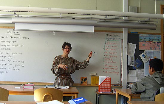 지금은 영어를 담당하고 있으며, 곧 스웨덴 학교에서 스웨덴어로 수업을 시작할 것이다.