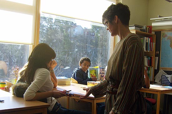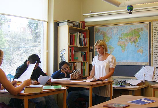 스웨덴어로 수업을 하는 7~9학년은 자물쇠를 걸 수 있는 큰 캐비닛을 하나씩 갖고 있지만, 우리들 교실에는 그런 것이 없다.