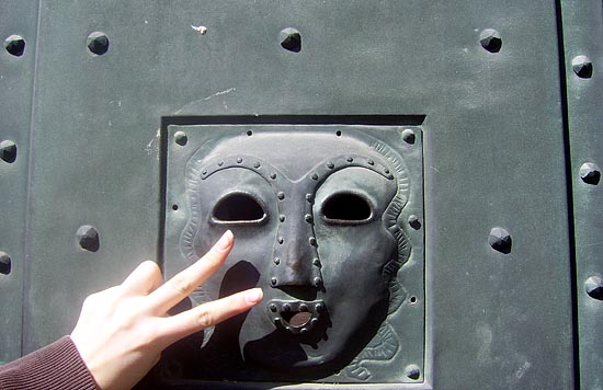한참을 헤맨 끝에 정문에 도착하니, 이미 다른 반의 몇 팀이 난간에 앉아서 설명을 듣고 있었다. 우리들은 기다리는 동안 문에 새겨져있는 괴상한 얼굴에 손가락을 집어넣으며 낄낄거렸다.