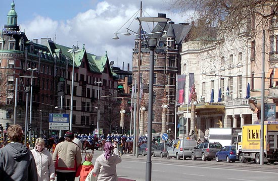 내 사랑 MAX(스웨덴 토종 패스트푸드점으로 광우병 걱정이 절대 없는 스웨덴산 쇠고기만 사용하고 맛도 괜찮지만 스웨덴 사람들의 입맛에 맞추느라 너무 짠 것이 흠이다)에서 음식을 주문하고 기다리는 도중, 말을 탄 근위병들이 군악대와 함께 지나가는 것이 보였다(그 짐승들은 폼이 나기는 하지만 남기고 가는 굉장한 말똥들을 보면 저걸 어쩌나 싶다). 스톡홀름에 사는 사람들은 이런 것을 보는 데 익숙해서 그냥 무심히 지나칠 줄 알았는데, 웬걸? 다들 카메라를 꺼내들고 셔터를 누르기 시작했다.