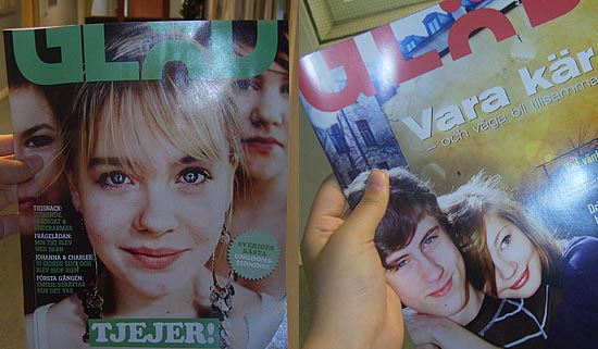 ‘Glöd’라는 이름의 잡지 표지에는 웃고 있는 여자아이들의 얼굴이 커다랗게 나와 있었고, ‘여자아이들!’이라는 문구가 쓰여 있었다. 그리고 그 옆에는 차례대로 ‘여자들의 수다’ ‘질문 상자: 여자 친구가 아기를 가졌어요.’ ‘요한나 & 찰리: 헤어졌다가 다시 시작했어요.’ ‘첫 경험: 어땠는지 에멜리에가 설명합니다.’와 같은 타이틀들이 나열되어 있었다. 그리고 그런 기사의 제목들은 ‘낚시’가 아닌 진짜였다.